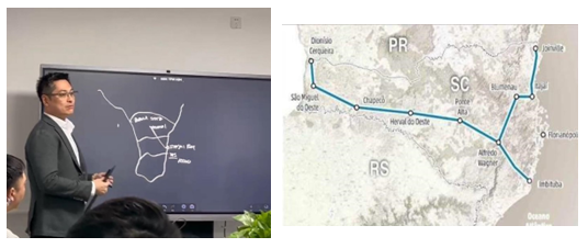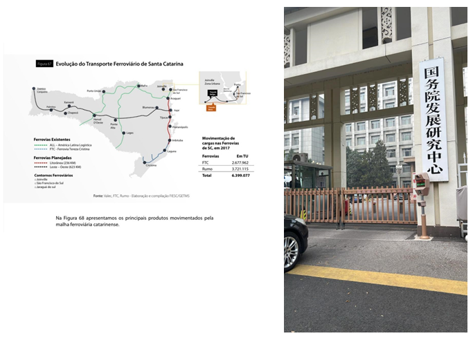 Explicando sobre o Projeto de Planejamento Ferroviário de Santa Catarina e outros projetos de infraestrutura para dar suporte à exportação e importação brasileira para a Ásia junto ao Conselho Executivo da China.